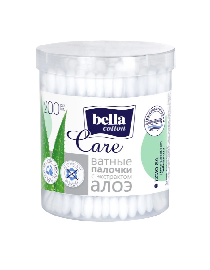 Bella cotton care Ватные палочки алоэ 200шт (коробка круг)