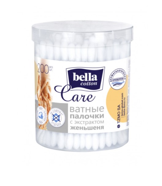 Bella cotton care Ватные палочки женьшень 200шт (коробка круг)