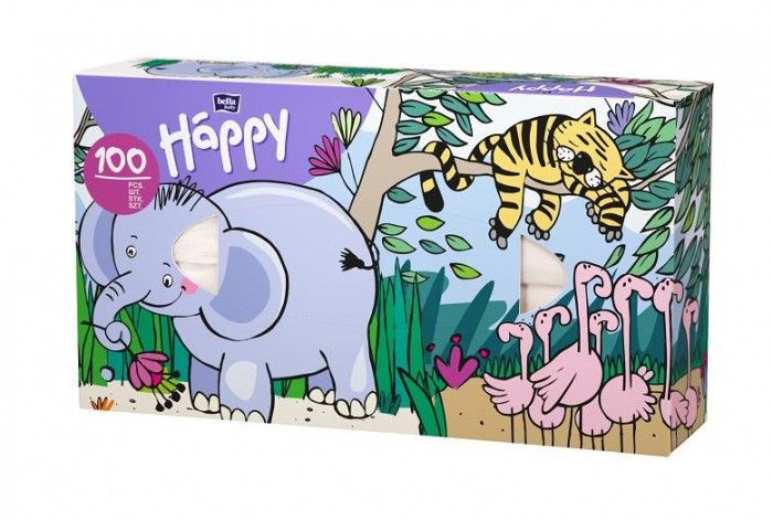 Bella Baby Happy Платочки бумажные 2-слойные Универсальные Микс 100шт*