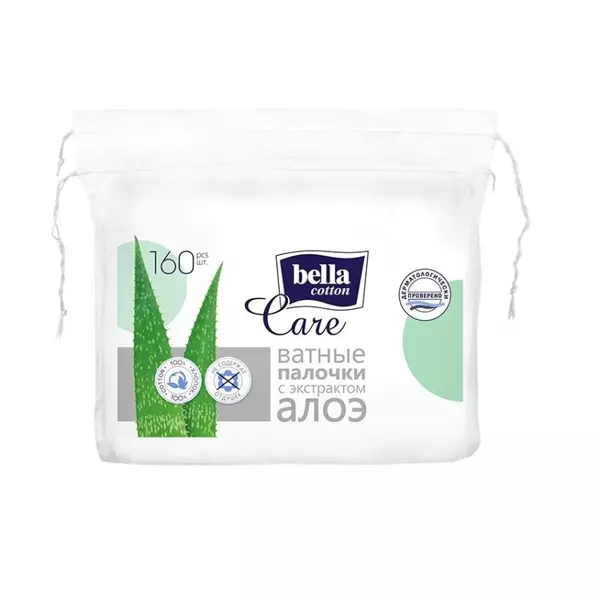 Bella cotton care Ватные палочки алоэ 160шт (п/эт шнурок)
