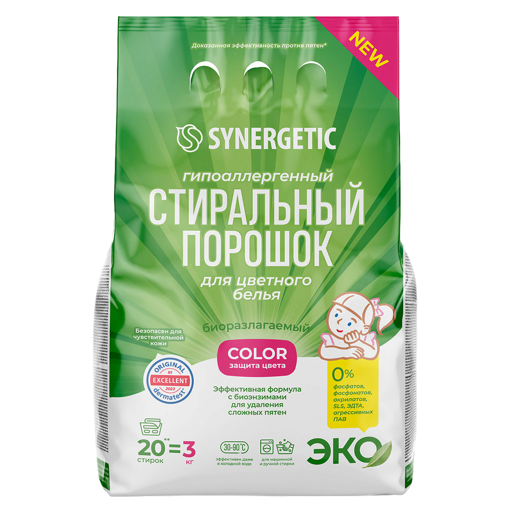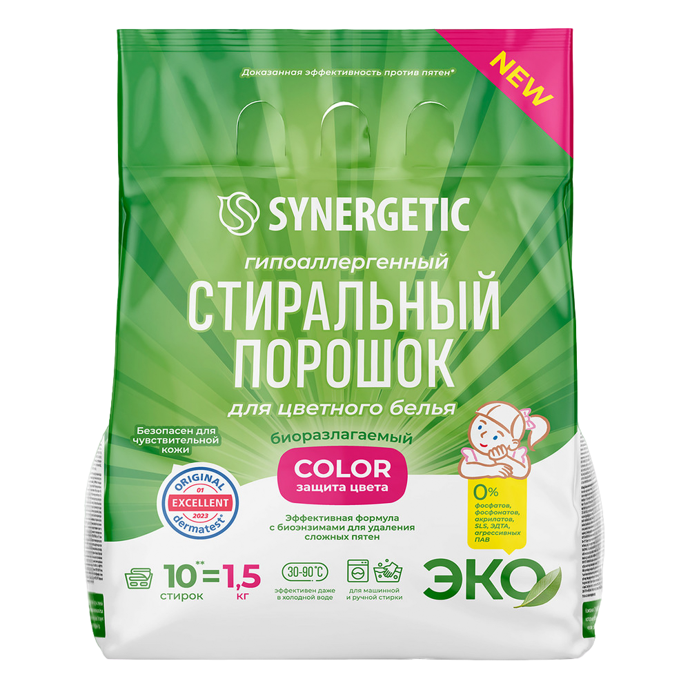 Представляем вам новинки на рынке средств для стирки — гипоаллергенный стиральный порошок для цветного белья COLOR SYNERGETIC, стиральный суперконцентрат в удобных стиках, а также биоразлагаемые гипоаллергенные капсулы, которые не только эффективно справляются с загрязнениями, но и заботятся о нашей планете.