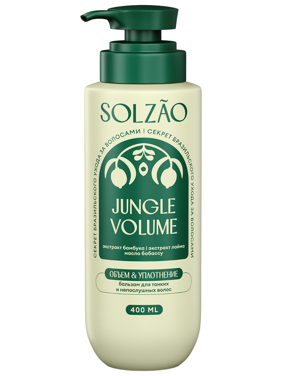 - Jungle Volume — для тонких и непослушных волос. Объем и уплотнение, как в густых джунглях! (● экстракт бамбука ● экстракт лайма ● экстракт гуараны ● масло бабассу)