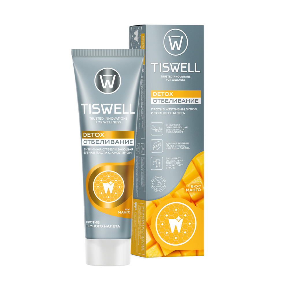 TISWELL Зубная паста отбеливающая энзимная от темного налета и камня Манго 110г