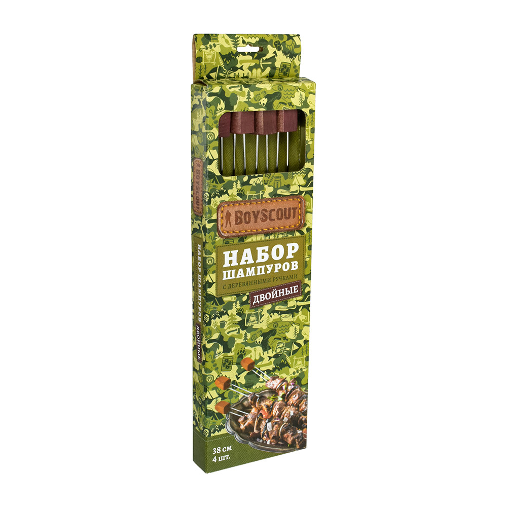 BoyScout Набор двойных шампуров с деревянными ручками 38см 4шт