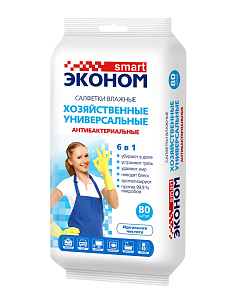 Эконом smart Салфетки влажные Хозяйственные 6 in 1 антибактериальные 80шт