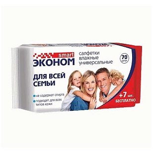 Эконом smart Салфетки влажные для всей семьи универсальные, 70шт