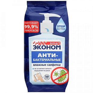Эконом smart Салфетки влажные антибактериальные санитайзер 50шт