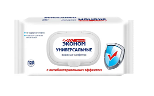 Эконом smart Салфетки влажные антибактериальные с клапаном 120шт