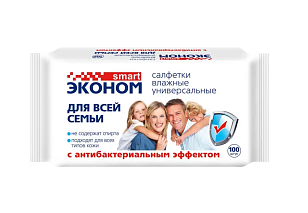 Эконом smart Салфетки влажные для всей семьи антибактериальные, 100шт