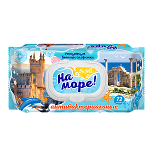 Salfeti На море! Влажные салфетки очищающие антибактериальные с пластиковым клапаном, 72шт