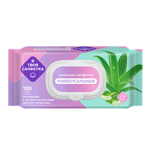 Я твоя салфетка Салфетки влажные очищающие универсальные с алоэ вера с клапаном 120шт*