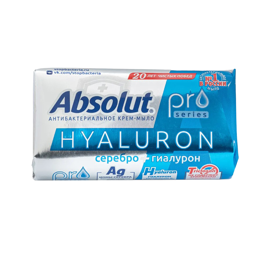 Твердое антибактериальное крем-мыло "ABSOLUT PRO" с новой антибактериальной формулой с ионами серебра, обладающими сильным бактерицидным действием. Дополнительный уход оказывает трендовый компонент гиалурон, который способствует увлажнению и восстановление кожи рук.