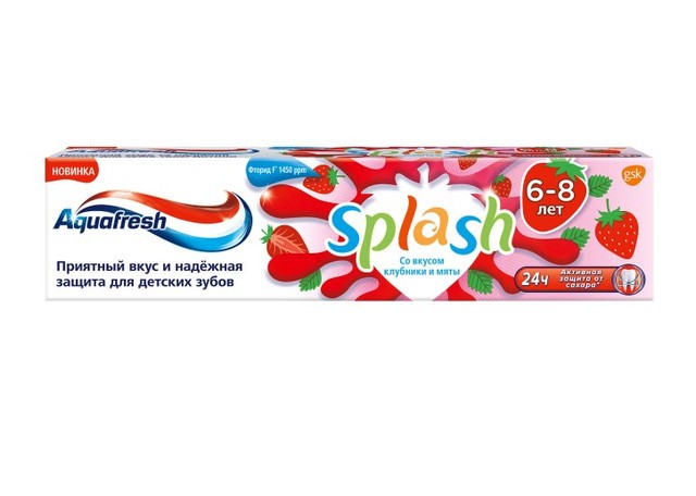 Aquafresh Splash Зубная паста детская Клубника 6-8 лет 50мл