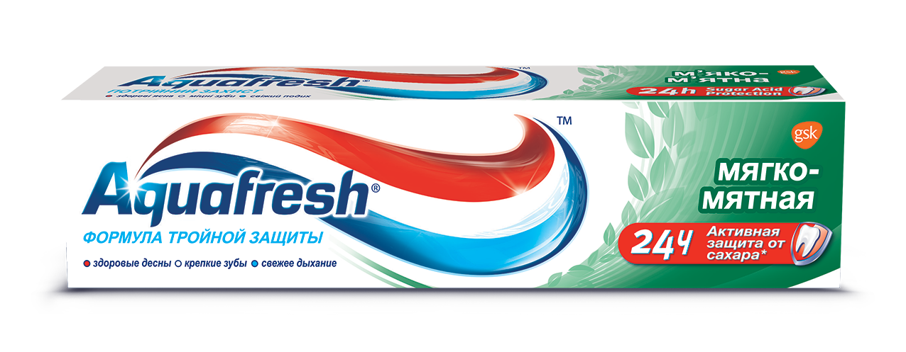 Зубная паста Aquafresh Мягко-мятная обеспечивает тройную защиту полости рта.* Подходит для ежедневного использования.
