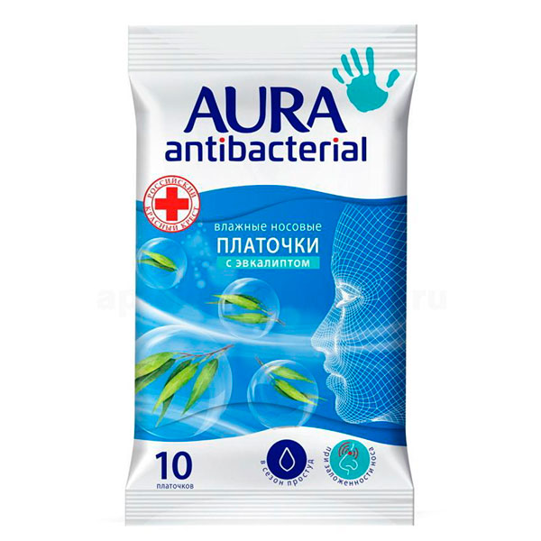 AURA Платочки носовые влажные Antibacterial pocket-pack 10шт