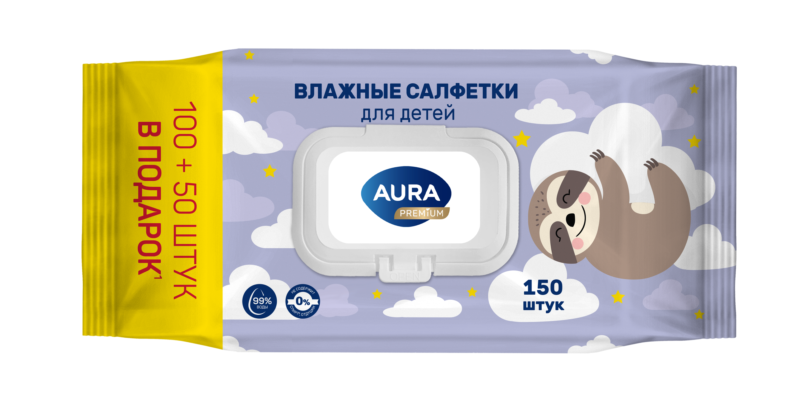 AURA PREMIUM Влажные салфетки для детей big-pack с крышкой 150шт