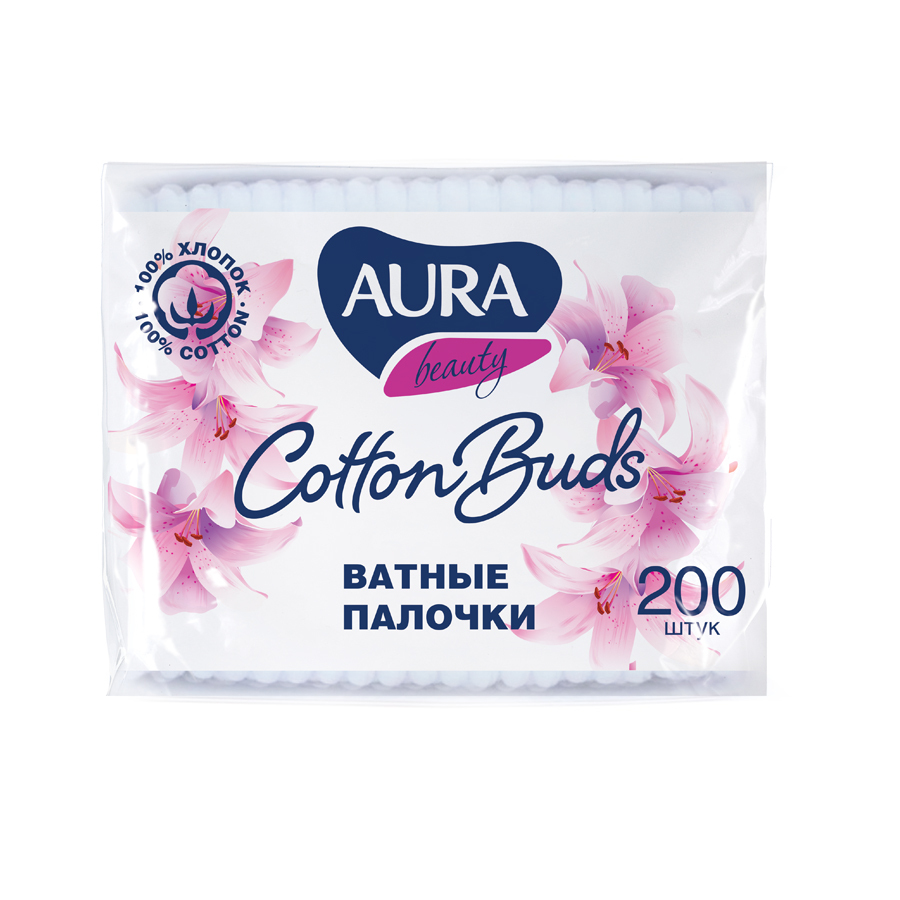 AURA Ватные палочки пэ пакет 200шт (48шт)