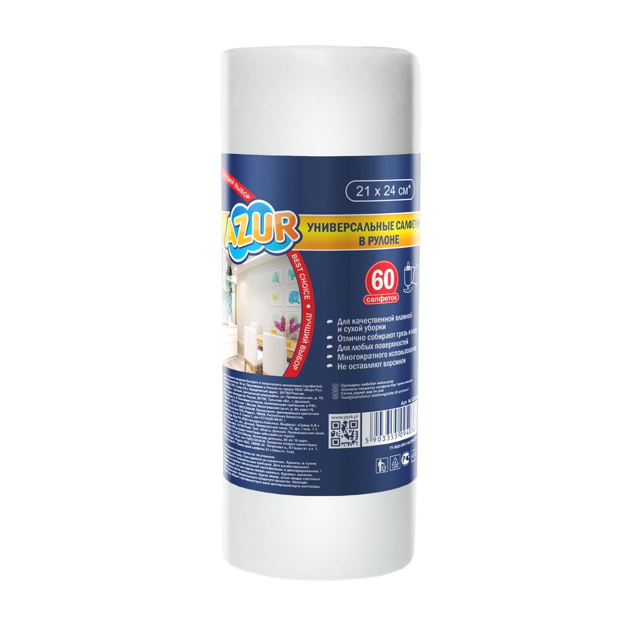 AZUR Салфетки универсальные в рулоне 21х24см 60шт