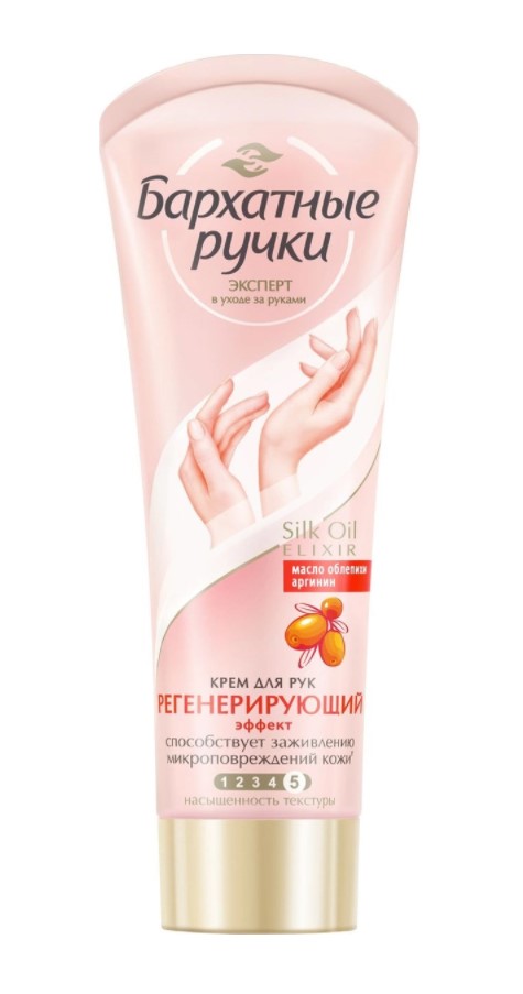 Бренд Бархатные Ручки представляет крем для рук Регенерирующий. Крем разработан специально для кожи рук, требующей особо интенсивного ухода. Компоненты в составе крема активируют восстановление клеток, обеспечивая профилактику появления мелких трещинок`.