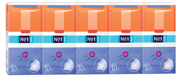Bella Платочки носовые 3-слойные Bella №1 10шт (Спайка 10шт)*