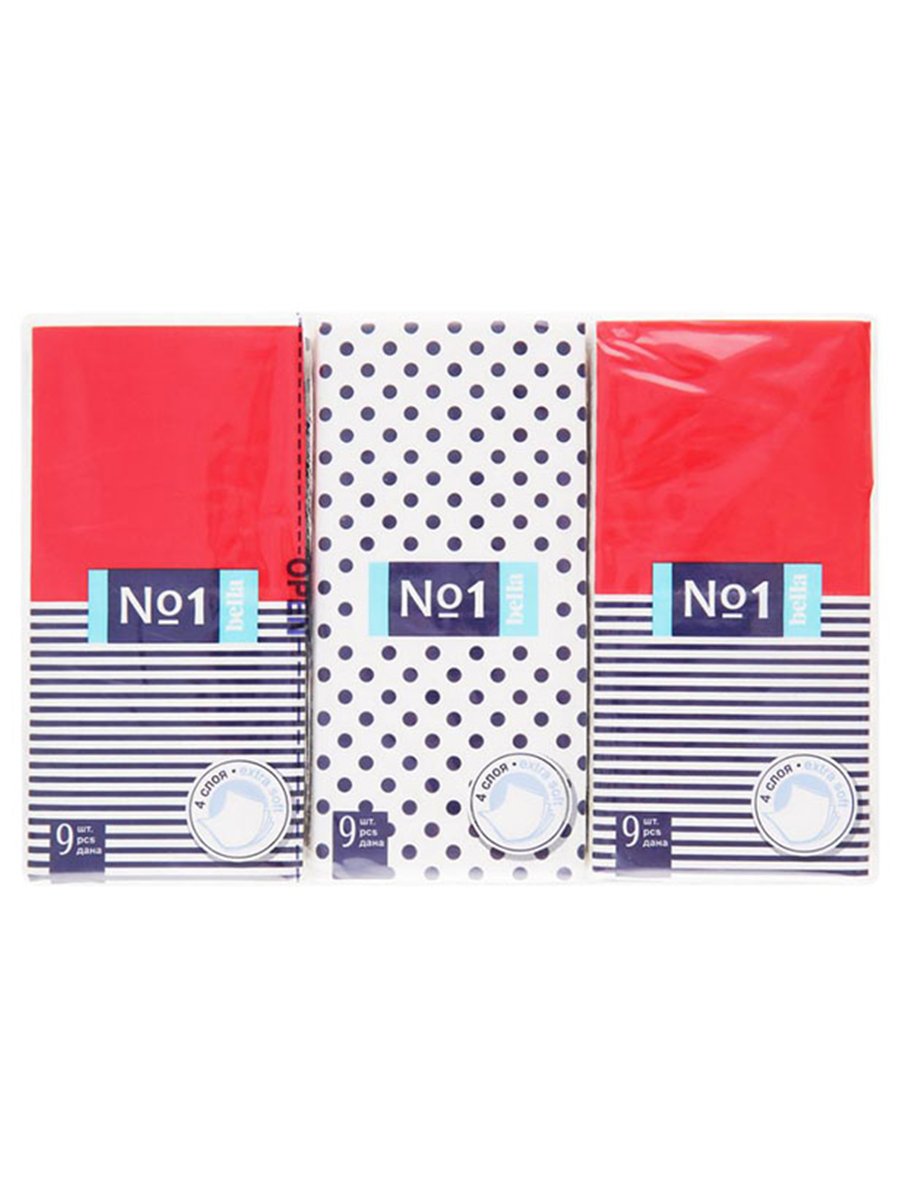 Bella Платочки носовые 4-слойные Bella №1 9шт (Спайка 6шт)*