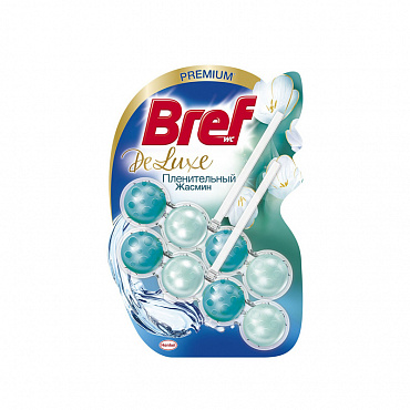 Туалетный блок Bref DeLuxe "Пленительный Жасмин" – это подвесной блок для унитаза с формулой 4 в 1: чистота, защита, аромат и пена.