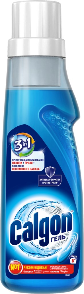 Смягчает жесткую воду - защищая все важные детали Вашей стиральной машины от образования накипи. С Calgon ваша стиральная машина работает эффективнее и качество стирки не снижается со временем. Использование Calgon при каждой стирки так же позволяет сохранить мягкость ткани, белые вещи - белыми, а остальные цвета - яркими.