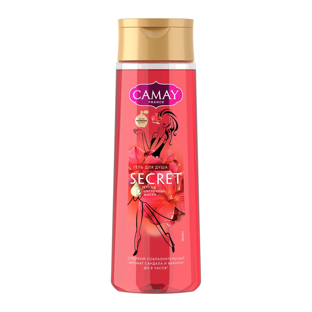 Приятная текстура геля для душа Camay Тайное блаженство с ароматом фиалок хорошо вспенивается и мягко очищает кожу. А благодаря технологии Fragrance Pearls™ в составе геля для душа, его пленительный аромат остается на коже до 8 часов после душа!*