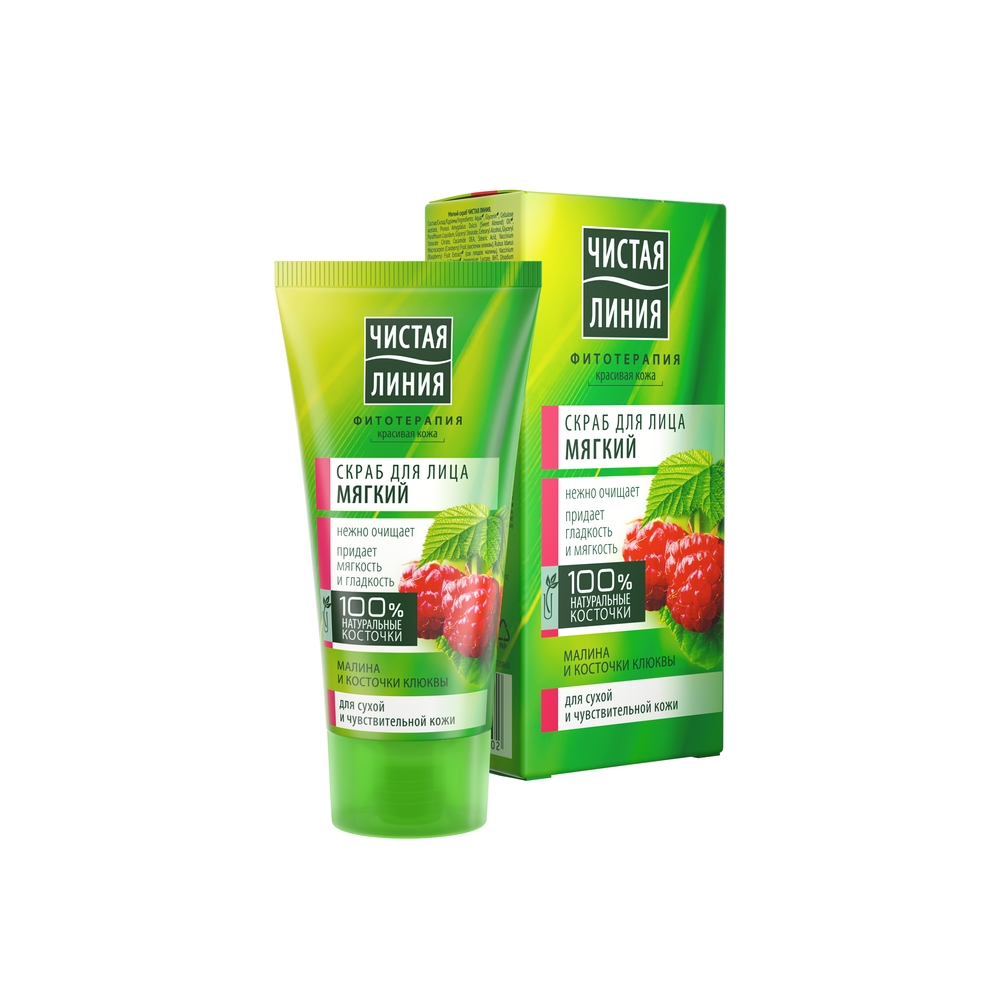 Подари коже гладкость и нежность! Мягкий скраб "Чистая Линия" содержит :- Измельченные косточки малины, которые бережно удаляют ороговевшие клетки, не травмируя чувствительную кожу; - Экстракт брусники, который прекрасно тонизирует кожу, стимулирует регенерацию клеток, улучшает цвет лица. После использования скраба кожа становится необыкновенно гладкой и нежной. Заметно улучшается внешний вид и состояние кожи. Результат: кожа более ровная, гладкая и нежная.