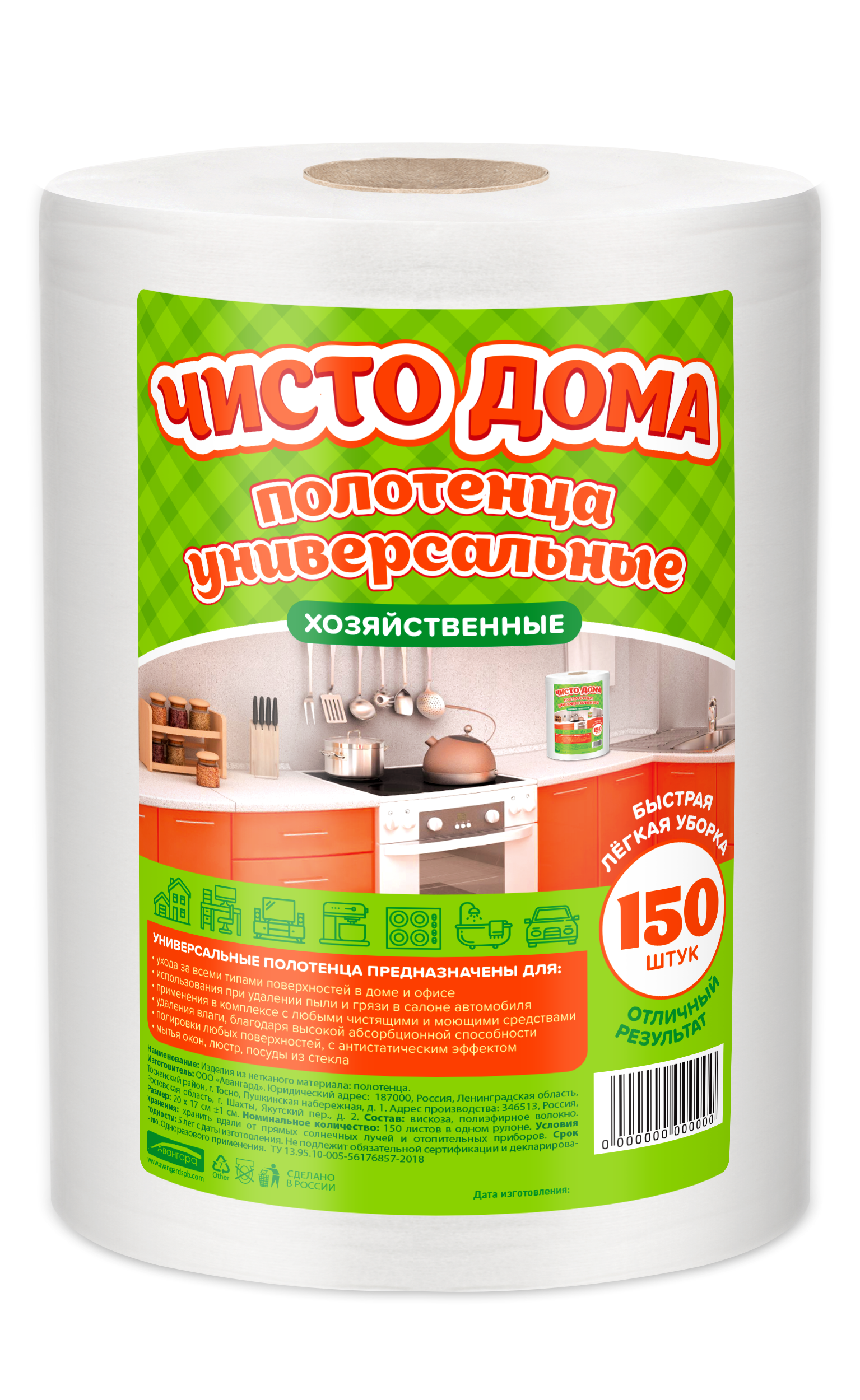 Чисто Дома Полотенца универсальные 20х17см 150шт