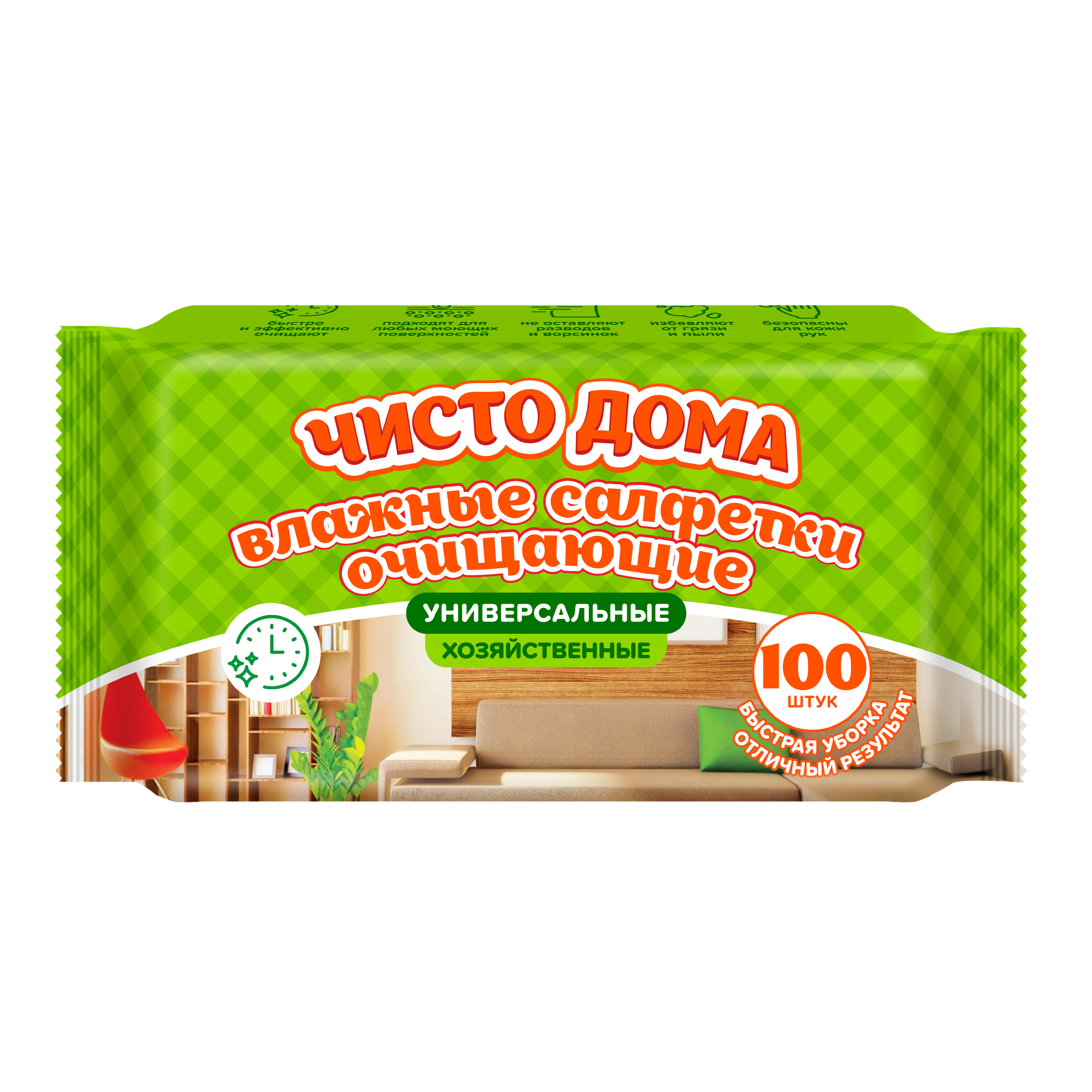 Чисто Дома Салфетки влажные хозяйственные очищающие универсальные 100шт