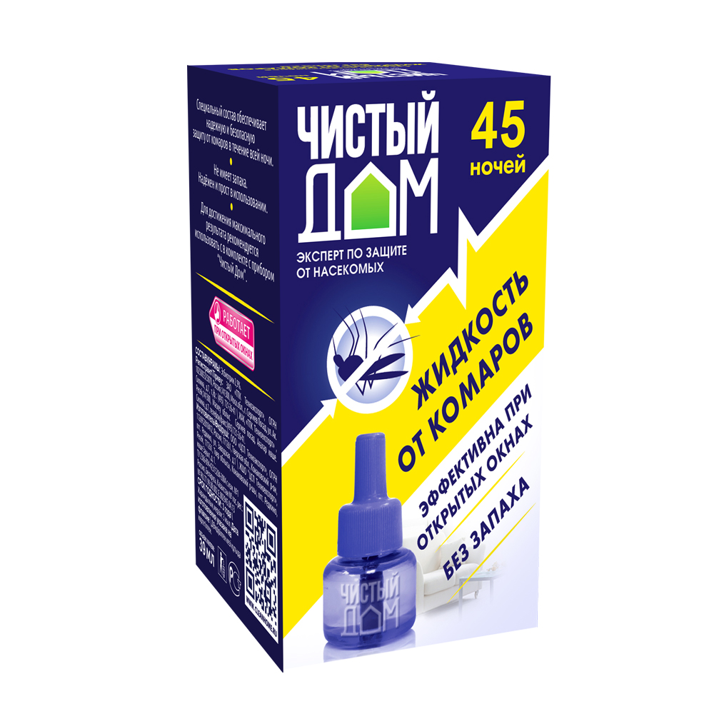 Чистый дом Жидкость от комаров 45ночей 1шт