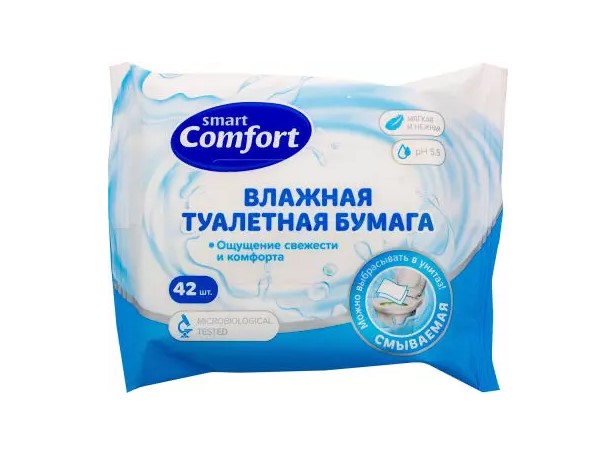 Влажная туалетная бумага создает ощущение свежести и комфорта. Имеет оптимальный рН5.5. Не раздражает даже чувствительную кожу. Проверена посредством микробиологических тестов. Не засоряет канализацию.