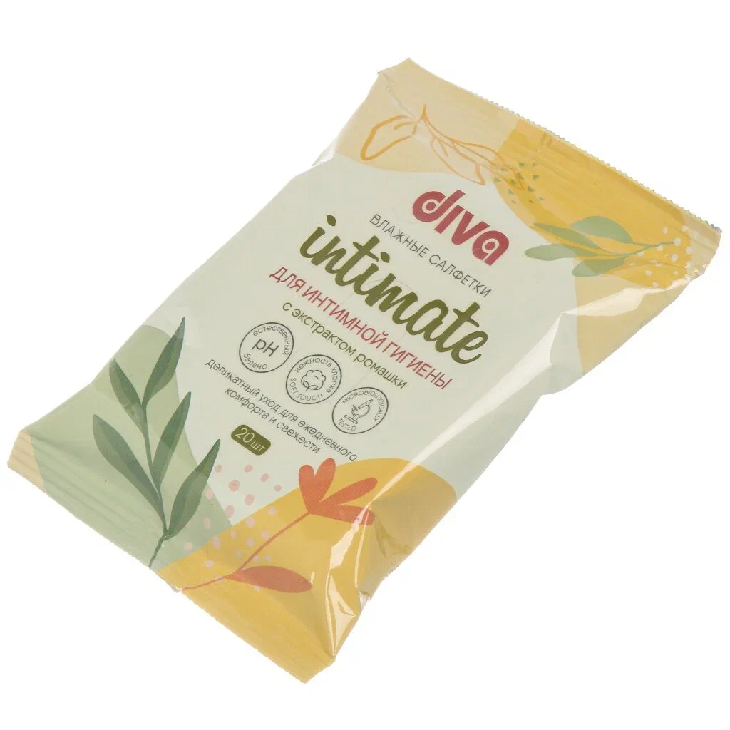 DIVA Салфетки влажные для интимной гигиены с ромашкой 20 шт