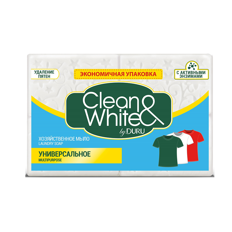 Белоснежное мыло для стирки Clean & White Универсальное – это незаменимое средство для борьбы с загрязнениями на тканях. Подходит для ручной стирки шерстяных вещей и мембранной одежды. Мыло хозяйственное для стирки Clean & White обладает приятным ароматом и эффективно справляется с пятнами благодаря энзимам - веществам органического происхождения, которые обеспечивают удаление трудных загрязнений.