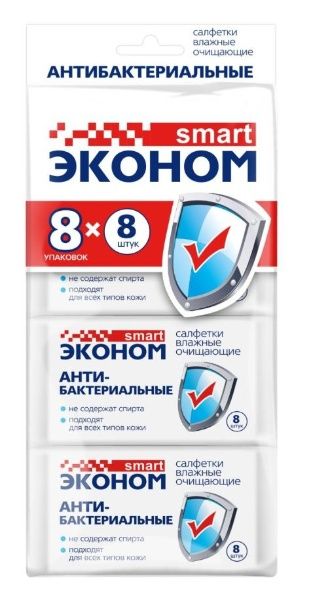 Эконом smart Салфетки влажные антибактериальные №8х8шт mini