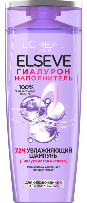 Увлажняющий шампунь Elseve Гиалурон Наполнитель обволакивает кутикулу волоса, интенсивно очищая и восстанавливая посредством увлажнения на 72 часа.