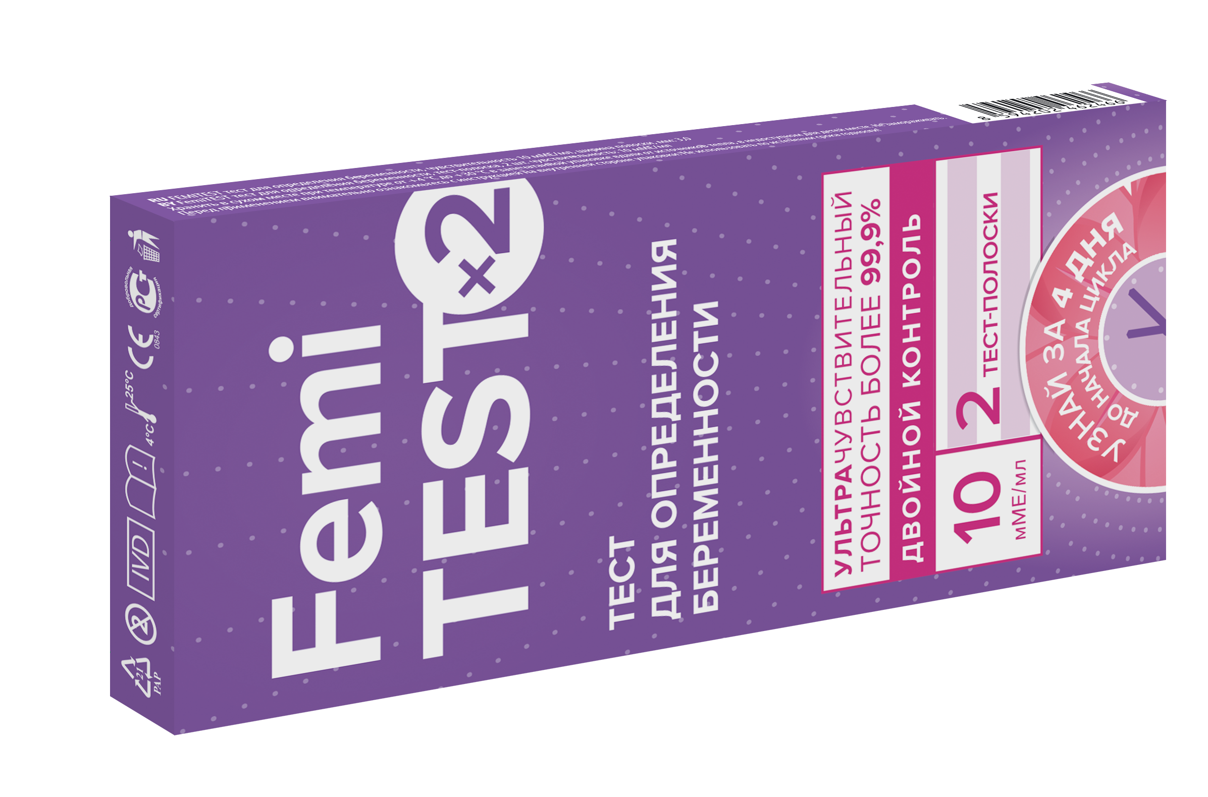 FEMiTESТ Тест-полоска для определения беременности, ультрачувствительный, 10 мМЕ, 2 шт.