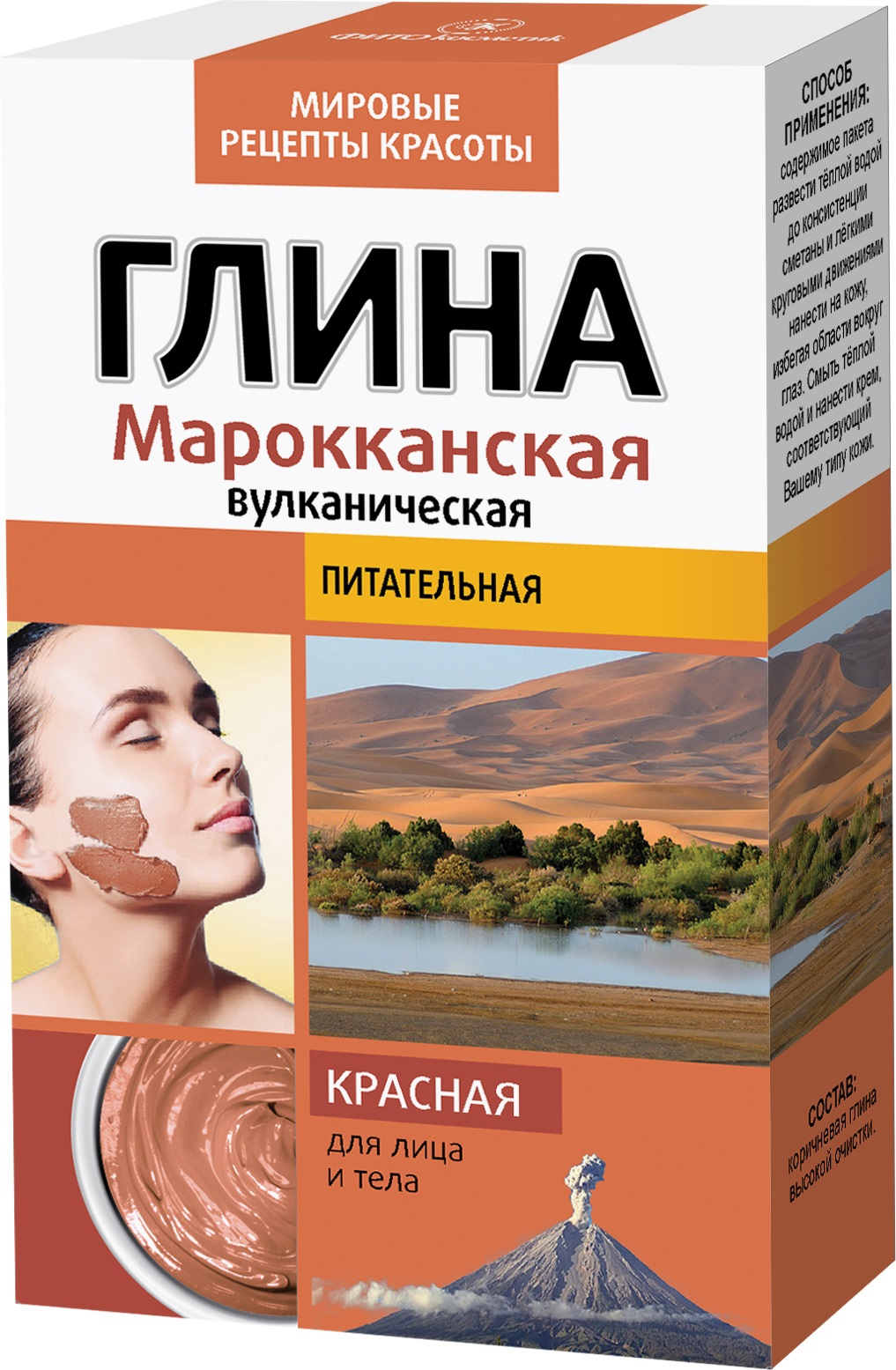 Красная вулканическая глина - настоящий предмет гордости Королевства Марокко, ее воздействие на кожу уникально. Маски на основе красной глины обладают прекрасными очищающими свойствами, насыщают кожу необходимыми минералами и микроэлементами, делая ее более упругой и бархатистой. Красная глина широко применяется в виде масок для ухода за волосами - это средство особенно хорошо для укрепления и восстановления волос, поврежденных после окрашивания и химической завивки.