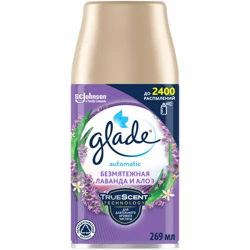 Glade Освежитель воздуха Automatic см.баллон Безмятежная лаванда и алоэ 269 мл