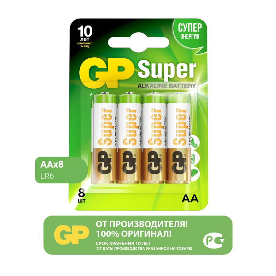 GP Super Alkaline 15А АА Батарейки 8шт на блистере