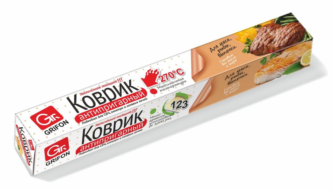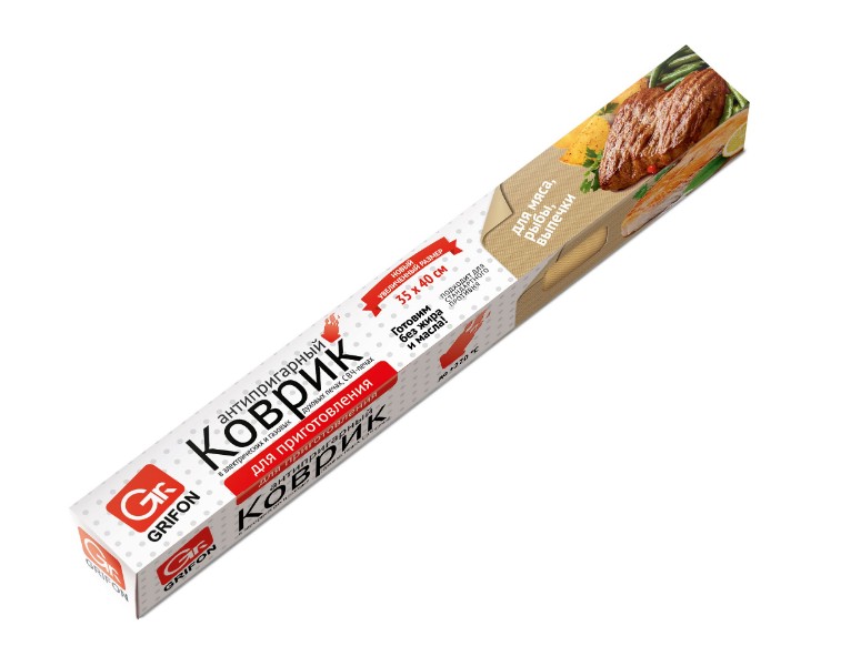 Хотите приготовить вкусное блюдо без использования масла и жира и при этом оставить ваш противень чистым? Воспользуйтесь антиприграным ковриком от компании GRIFON! Размеры коврика (33 х 40 см) идеально подходят для использования на стандартных противнях. У антипригарного коврика прекрасные прочностные характеристики, его можно использовать до 1000 раз. Антиприграный коврик GRIFON предотвращает пригорание и прилипание благодаря тефлоновым волокнам, помогает сохранить все полезные свойства продуктов и их изумительный вкус. Предназначен для выпечки и приготовления любых блюд: пиццы, мяса, рыбы и других продуктов. Коврик легко моется и не впитывает запахи. С его помощью вы можете с легкостью переходить от приготовления одного блюда к следующему рецепту, при этом помыть гибкий коврик в кухонной мойке гораздо проще и удобнее, чем противень духового шкафа. Для длительного использования нужно следовать простым правилам: нельзя сгибать, надламывать и надрезать коврик.