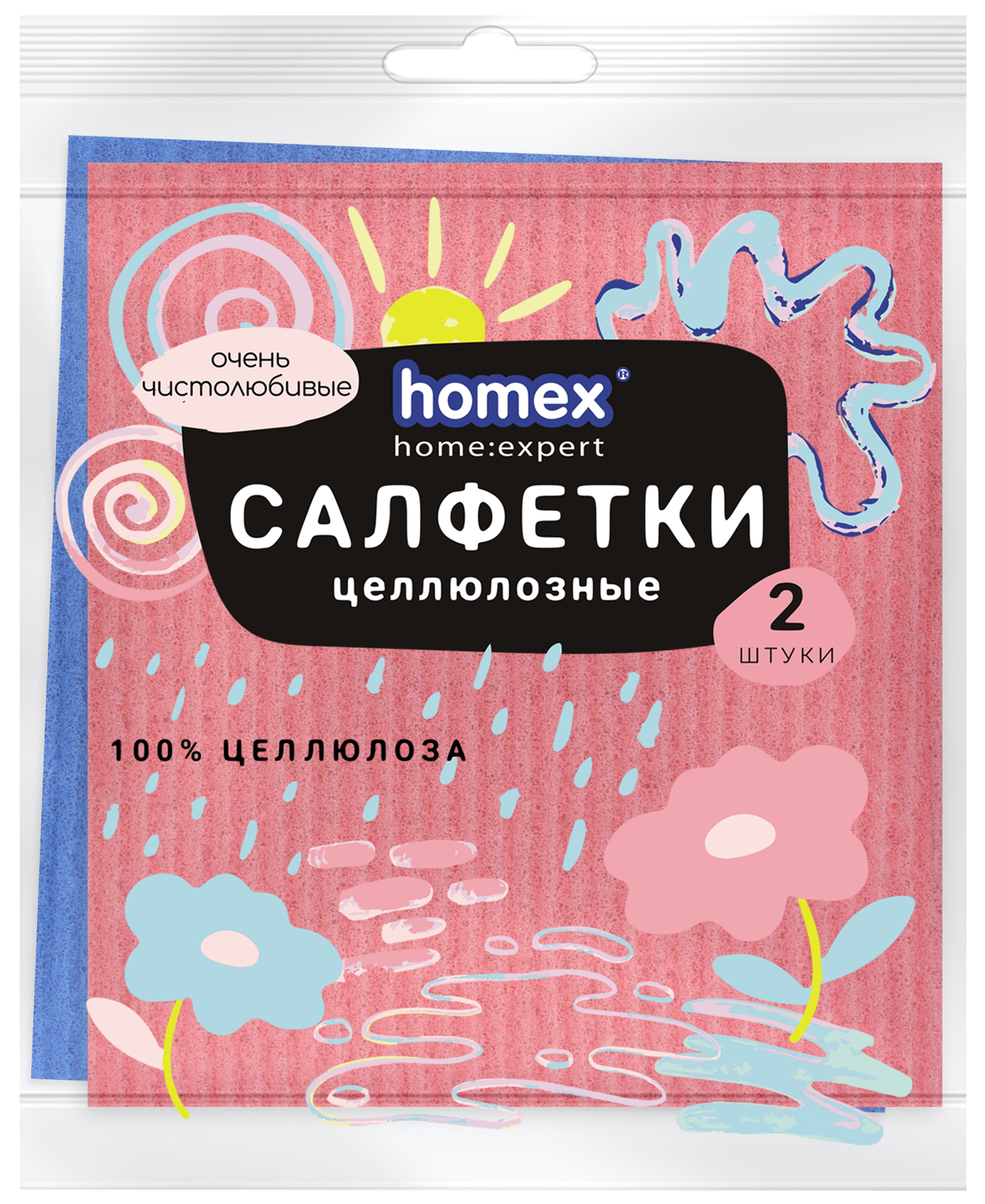 HOMEX Салфетки из целлюлозы Очень чистолюбивые 15х15см 2шт