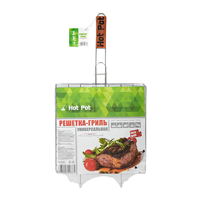 Размер: 50(+4) х 28 х 28 см Жарочная поверхность 28*28*1,4 см С помощью решёток для барбекю HotPot, изготовленных из высококачественной стали, Вы сможете приготовить различные блюда на мангале или на костре. Вы найдёте решётки для любых целей: для приготовления мяса, рыбы, морепродуктов, птицы или овощей. Приготовление еды с использованием решеток HotPot станет для Вас приятным удовольствием. Хромированное покрытие сделает процедуру чистки легкой и быстрой.