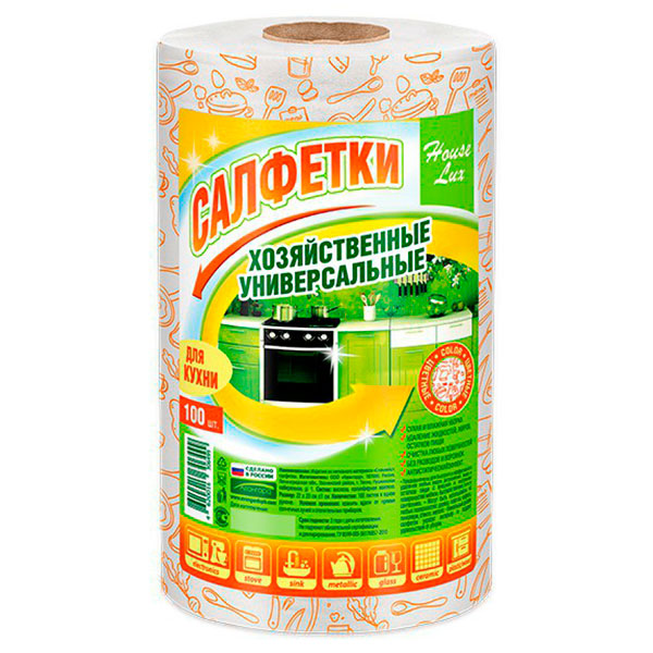 Хозяйственные универсальные сухие салфетки для сухой и влажной уборки House Lux помогут быстро и эффективно справиться с любыми видами бытовых загрязнений, а уникальный дизайн украсит ваш интерьер и подарит удовольствие от уборки. Идеально подходят для удаления загрязнений, жира и остатков пищи с внешних и внутренних поверхностей мебели, бытовой техники, плит и сантехники. Обладают антистатическим эффектом. Могут быть использованы на любых поверхностях: дерево, пластик, кафель, линолеум, стекло, металл. Обладают превосходными впитывающими свойствами, не оставляют разводов на стекле и ворсинок на поверхности. Подходят для многоразового использования. Хранить вдали от прямых солнечных лучей и отопительных приборов.