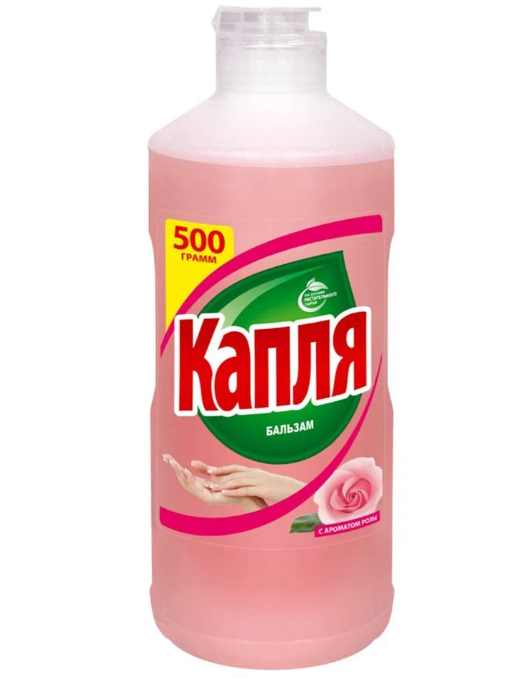 Средство для мытья посуды Капля Бальзам с ароматом розы эффективно удаляет любые загрязнения даже в холодной воде. Обильная пена обеспечивает оптимальный расход, полностью смывается водой, не оставляя разводов. Бережно заботится о коже ваших рук, устраняет неприятные запахи.