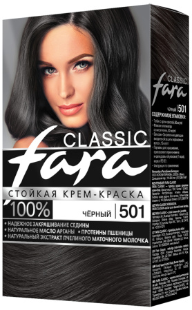 Стойкая крем-краска для волос Fara Classic 501 Черный мягко окрашивает, придавая волосам стойкий насыщенный цвет.