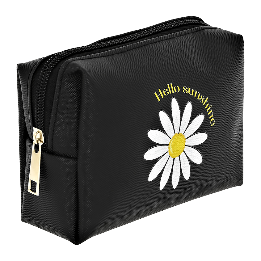 LADY PINK Косметичка черная с принтом ромашки 1шт