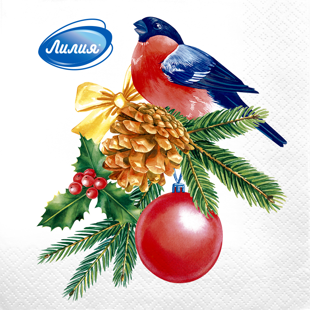 Лилия Салфетки бумажные 2-сл Снегирь 33х33см 20шт*