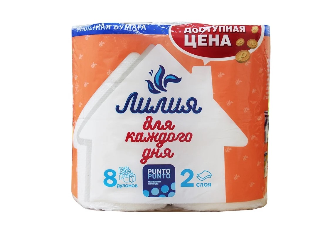 Бумага туалетная Лилия 2-слойная белая (8 рулонов в упаковке)